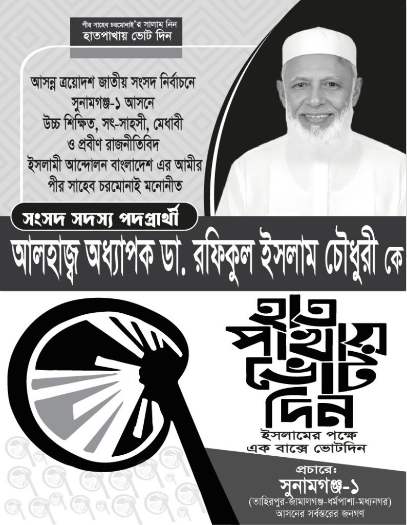 সুনামগঞ্জ–১ সংসদীয় আসনে ইসলামী আন্দোলন বাংলাদেশ-এর মনোনীত প্রার্থী। জনগণের সেবায় নিবেদিত।